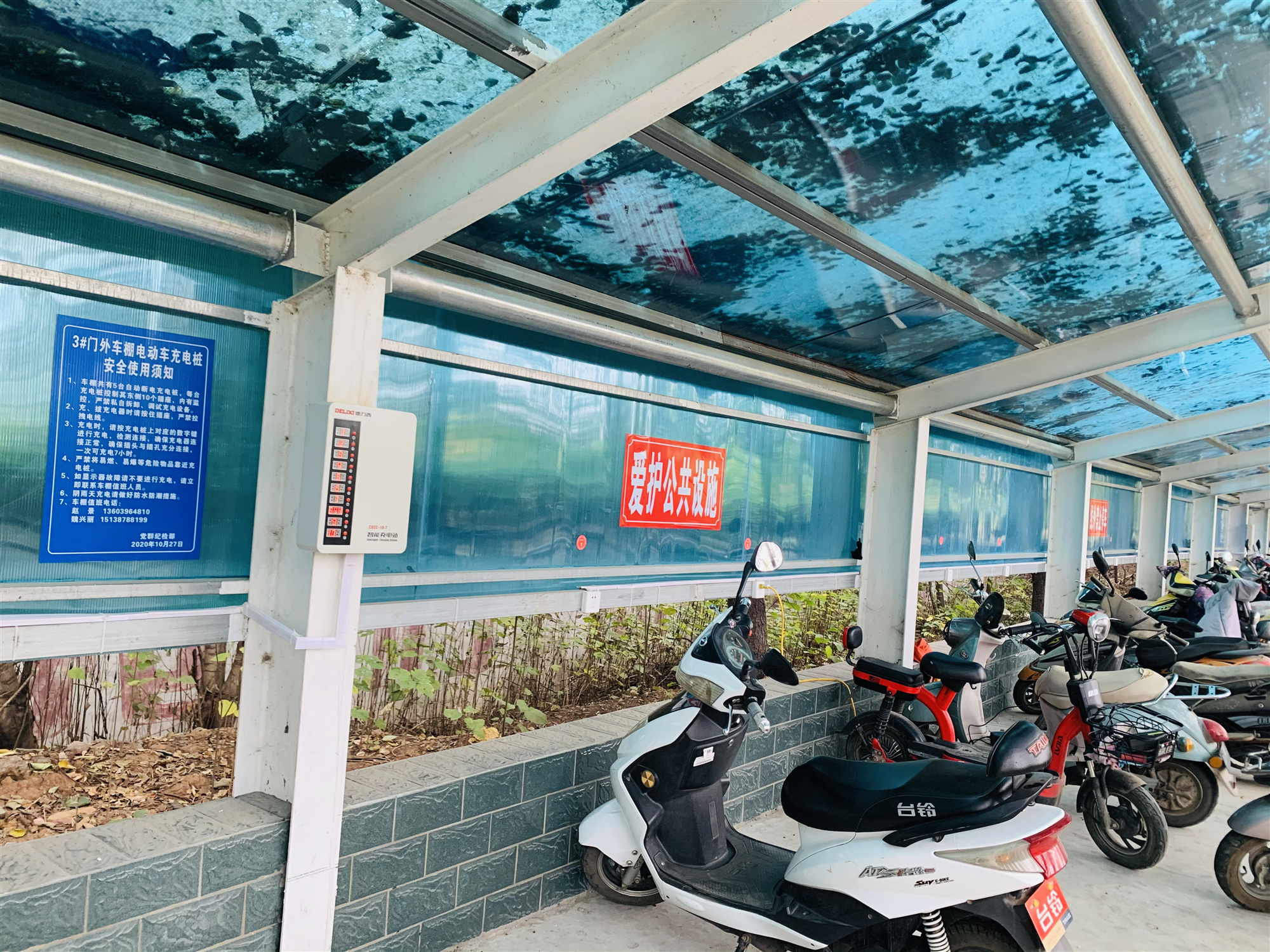 公司3#電動車棚總面積有400多平方米,主要停放公司職工及外來人員電動車,前期建設(shè)時,由于沒有考慮安全要求,車棚內(nèi)部充電設(shè)施沒有自動斷電裝置,消防安全隱患極大,一旦發(fā)生火災(zāi),后果及損失不堪設(shè)想。為此,黨群紀(jì)檢部在克服沒有專業(yè)電工人員的情況下,經(jīng)多方協(xié)調(diào)及努力將3#車棚進(jìn)行智能化改造,統(tǒng)一安裝集中充電斷電裝置。截止目前,該車棚的集中充電斷電裝置已經(jīng)安裝完畢投入使用。