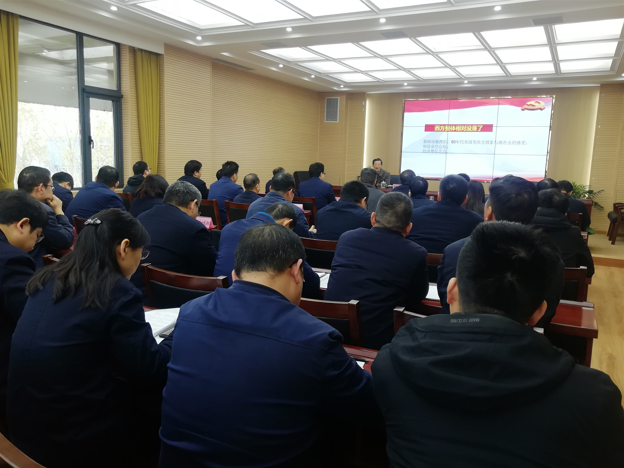 為認(rèn)真學(xué)習(xí)貫徹黨的十九屆五中全會精神,切實增強(qiáng)同力水泥豫西運(yùn)營區(qū)全體員工的思想自覺、政治自覺和行動自覺,把十九屆五中全會的各項決策部署和工作要求落到實處,12月3日,黃河同力、騰躍同力舉辦黨委理論學(xué)習(xí)中心組(擴(kuò)大)集體學(xué)習(xí)報告會,邀請洛陽市委十八大、十九大精神宣講團(tuán)成員、市委黨校黨史黨建教研部副教授趙家國作題為“歷史交匯點上的宏偉藍(lán)圖——黨的十九屆五中全會精神解讀”主題報告。黃河同力、騰躍同力黨委班子成員、各支部書記、中層干部和各支部支委代表40余人等聽取了報告。
