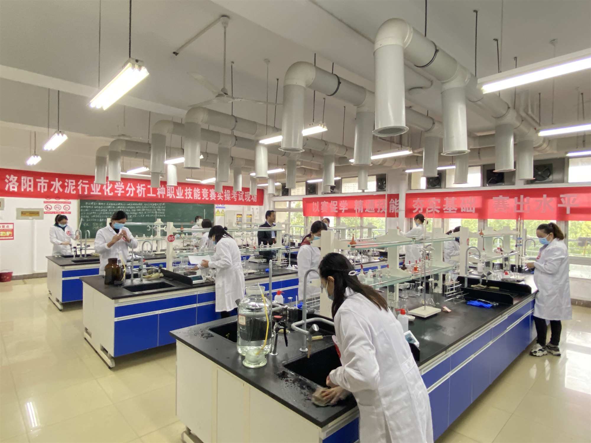 本次競賽包括理論知識考試和實際操作考試兩部分,理論知識考試采用閉卷方式進(jìn)行,實際操作考試在洛陽理工學(xué)院環(huán)化學(xué)院實驗中心進(jìn)行,實操主要設(shè)有測定水泥中的氧化鈣、氧化鎂、三氧化二鐵、三氧化二鋁、二氧化硅的含量等多項考核內(nèi)容。
